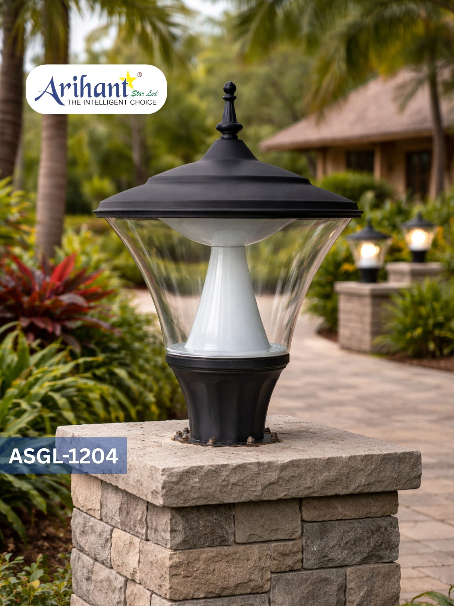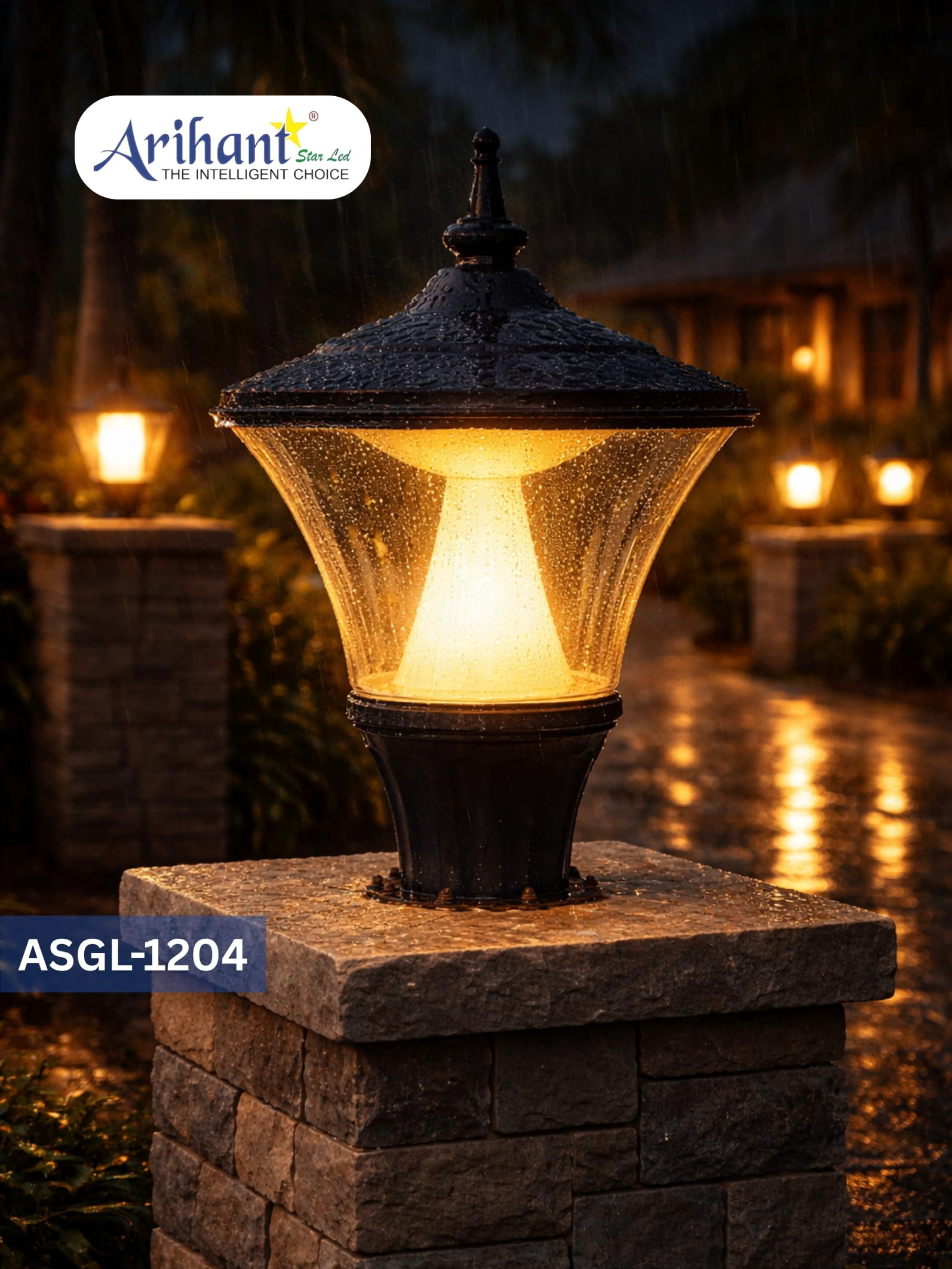 The Arihant Star Post Pillar Light 15 Inch is a very good and attractive option for outdoor lighting. Constructed of an aluminium body with gray powder-coated finish this light is ideal for all weather conditions. The bollard light dimensions are 15.6 inches in height and 11 inches in width.